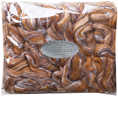 SILK MERINO Fiber for Spinning. Super Soft Combed Top Wool Roving for Hand Spinning, Wet Felting, Nuno Felting, Needle Felting, Soap Making, Paper Making and Embellishments. Eye of the Tiger