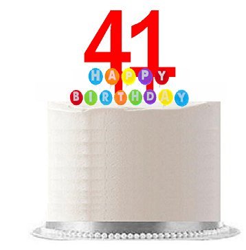 Item#041WCD - Happy 41st Birthday Party Red Cake Topper & Rainbow Candle Stand Elegant Cake Decoration Topper Kit
