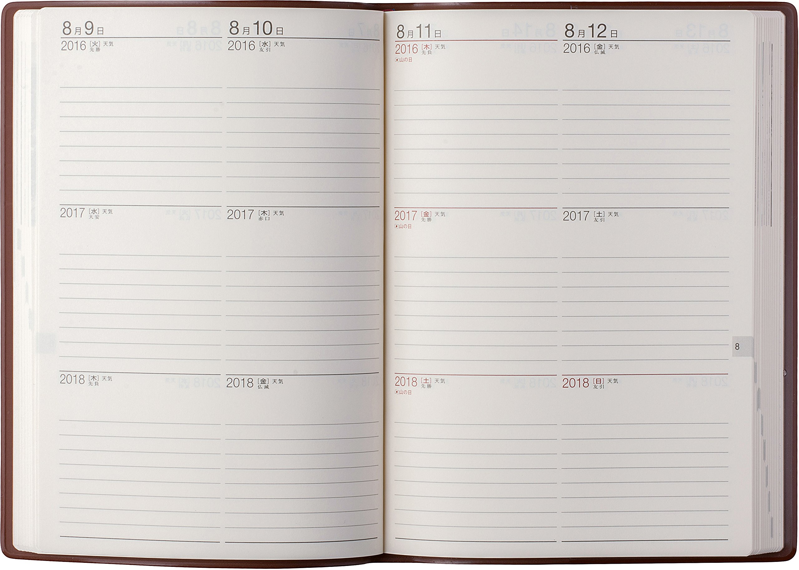 Since it is possible to compare the same day of multiple years, it is also suitable for long-term planning and diary.