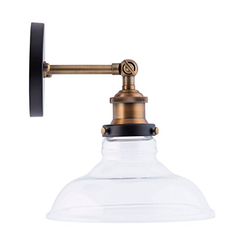 - DIMENSIONS - 8" wide x 9.25" high, extends 8.5" from the wall. Backplate is 4.5" in diameter. Features a 8" diameter clear glass shade