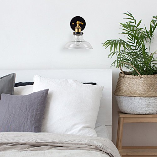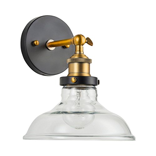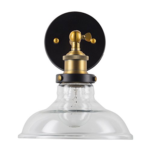 Lucera One-Light Wall Vanity Corridor Sconce Lamp with LED Edison Bulb Included. Black with Antique Brass Accents. UL Listed, Linea di Liara LL-WL431-AB