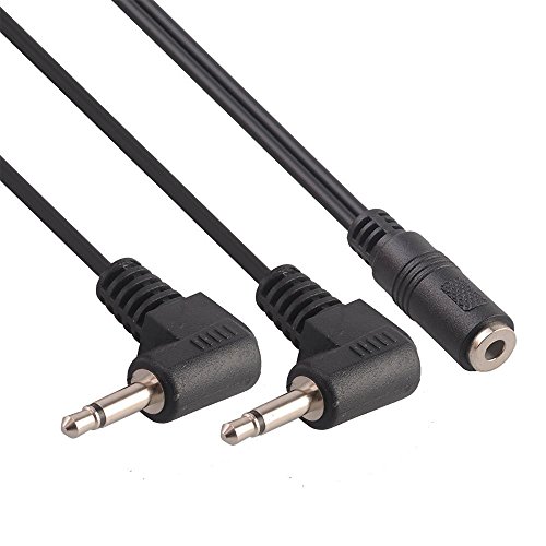 Wpeng 3.5mm 1/8 inch Female to 2 Dual 1/8 inch 3.5mm Male Right Angle 90 Degree Adapter Cord Y Splitter Cable - 6 inch(3.5F/2M)