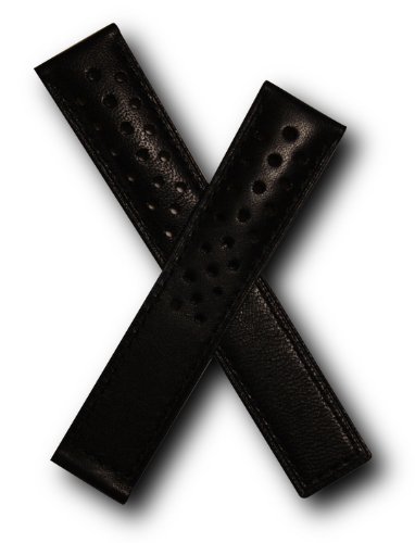 -. Title : 20mm Black Sports Perforated Genuine Leather Watchband with Black Stitch to Fit TAG Heuer Carrera (Spring bars included)