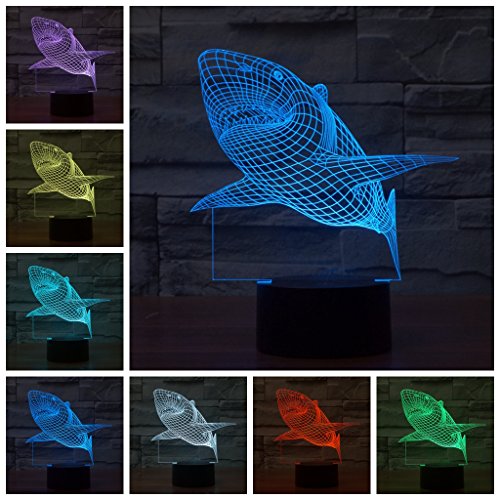 Geekercity Shark 3D Optical Illusion Desk Lamp Night Light, 7 Colors Changing Touch Switch Table Home Decoration Nightlight for Bedroom Kids Room,...