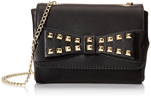 Cross-body bag in faux leather featuring large bow embellished with gold-tone pyramid studs