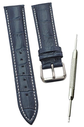 원본상품명: 【白ステッチ 本革製 クロコダイル型押し ネイビ? 20mm】時計ベルト 時計バンド ストラップ 交換 腕時計【バネ棒外しセット】