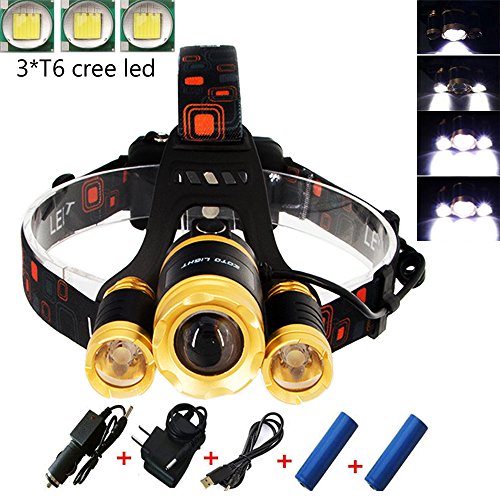 5000 lumens powerful headlamp : 3*T6 LED light, lifespan can reach up to 100000 hours .