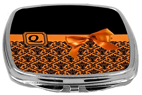 Rikki Knight Letter-Q Monogram Damask Bow Design Compact Mirror, Orange, 2 Ounce
