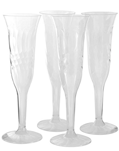 Kaya Collection - Disposable Plastic Clear 5.5oz Champagne Flutes Crystal-Like Design - 1 Case (96 Flutes)