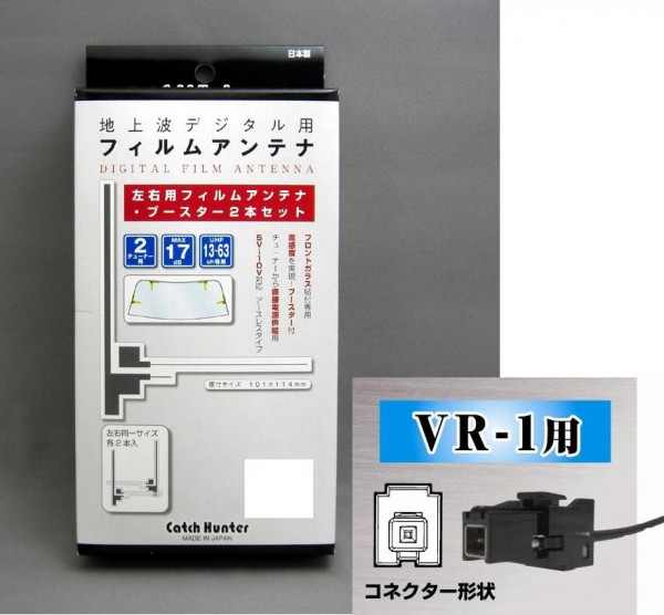 | 仕様 | 適合車種:2チューナー、VR-1端子用 エレメントフィルムサイズ:105×27/15mm ブースター内蔵 ブースター利得:17dB 入力電圧:5~10V 消費電力:45mA×2 左右タイプ 保証期間:6ヶ月 |