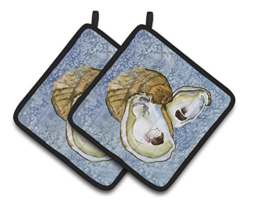 Caroline's Treasures Oyster Pair of Pot Holders 8152PTHD, 7.5HX7.5W, Multicolor