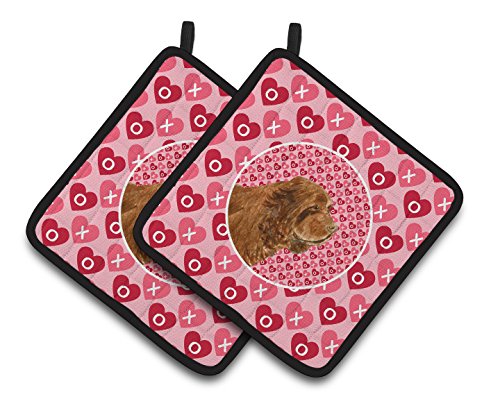 Caroline's Treasures Sussex Spaniel Hearts Love Valentine's Day Pair of Pot Holders SS4510PTHD, 7.5HX7.5W, Multicolor