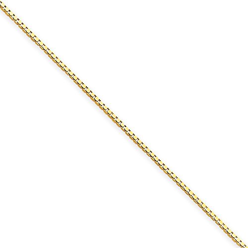 Simple, classic and ready for your favorite pendant, this delicate 14k yellow gold box chain is 0.9mm in width, 14 inches in length and closes with a classic spring ring clasp.