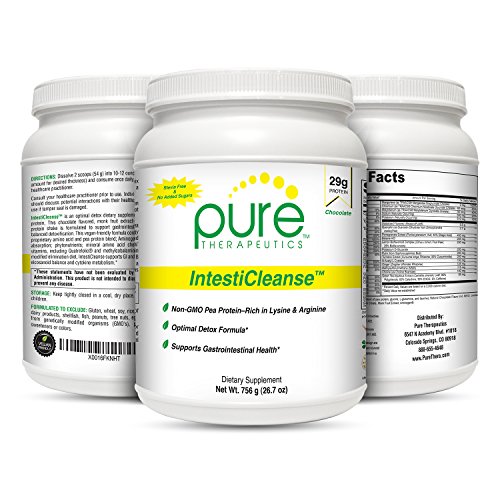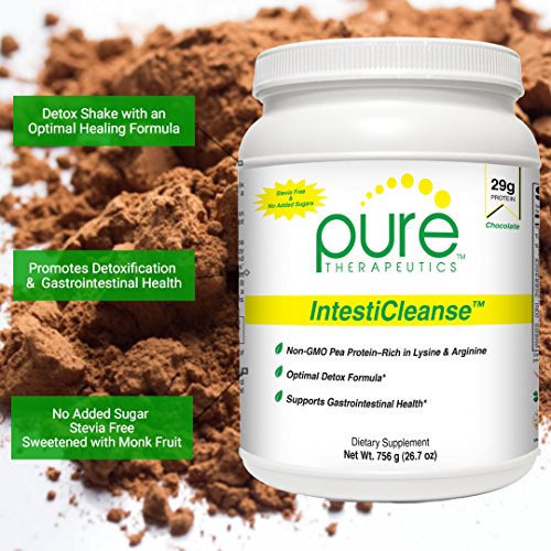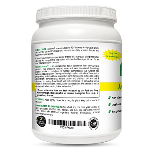 -. Binding : Health and Beauty -. Brand : Pure Therapeutics -. Feature : IMPROVED FORMULA - No Added Sugar & Stevia-Free...sweetened ONLY with Monk Fruit! This formula is suitable for Vegans / FEATURES: MeadowPure, Aminogen® & Quatrefolic® / SUPPORTS: Natural Detoxification Mechanisms, Gastrointestinal Health and Anti-Inflammatory Mechanisms* / IntestiCleanse is an optimal detox dietary supplement from non-GMO pea protein. This vanilla flavored, monk-fruit extract-sweetened, low-allergy meal replacement is formulated to support gastrointestinal (GI) function and balanced detoxification. / Manufactured in the USA in a GMP-certified facility, for guaranteed quality and potency. -. IsAdultProduct : 0 -. Label : Pure Therapeutics -. LegalDisclaimer : *These statements have not been evaluated by the Food and Drug Administration. Pure Therapeutics products are not intended to diagnose, treat, cure, or prevent any disease* -. Manufacturer : Pure Therapeutics -. ProductGroup : Health and Beauty -. ProductTypeName : HEALTH_PERSONAL_CARE -. Publisher : Pure Therapeutics -. Studio : Pure Therapeutics -. Title : IntestiCleanse Protein