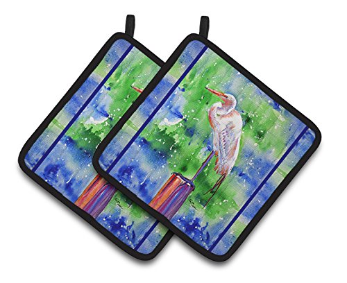 Caroline's Treasures Egret Pair of Pot Holders 8358PTHD, 7.5HX7.5W, Multicolor
