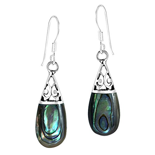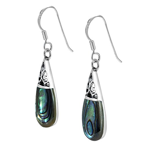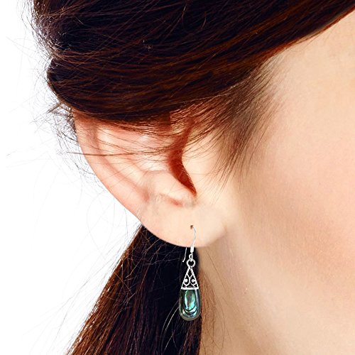 A intricate .925 sterling silver filigree design en-wraps teardrop shaped abalone shell inlays in this amazing earring set. Thai artisan Goong handcrafted these fish hook dangle earrings which are a perfect compliment to your style and natural beauty. PLEASE NOTE: The handcrafted nature of this product will produce minor differences in design, sizing and weight. Variations will occur from piece to piece, measurements may vary slightly.AERAVIDA works directly with gifted and talented Artisans from all over the world. At the core of our philosophy is fair trade and fostering a sustainable future for our Artisans.