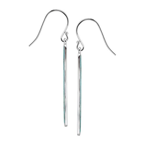 Give your outfit a cool pop of color with these turquoise earrings. Elongated strips of bezel-set turquoise totaling 1 3/4 ct feature breathtaking, dark acrylic design against a setting of cool, sterling silver. The sleek, vertical design makes them subtlety, yet their vibrant blue-green hue coupled with the two-tone nature ensures they won't go unnoticed. Wear them with warm-weather staples like printed tops and maxi dresses, and with the matching Reversible Double Y-Necklace and Reversible Boomerang Necklace. Earrings measure 2 3/4 by 3/4 inches, finished with French-wire back-findings. Piece comes with a ".925" sterling silver stamp as a symbol of guaranteed product quality.
