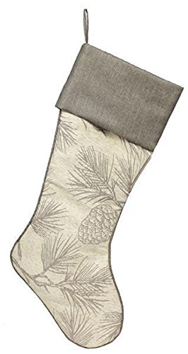 24 inch Woven Pine Branch and Cone Embroidered Christmas Stocking with Grey Cuff