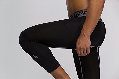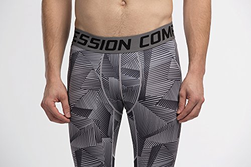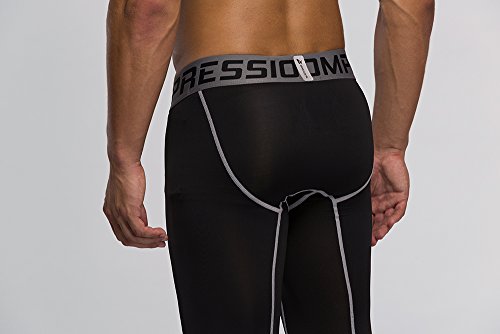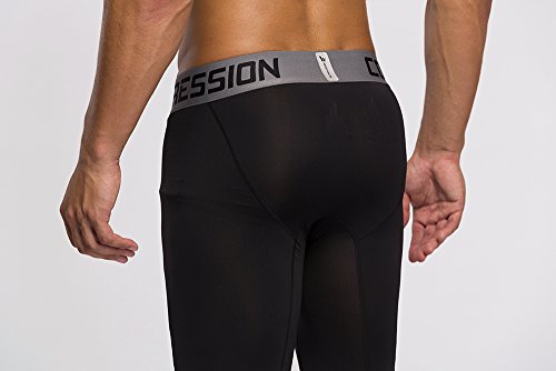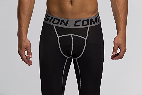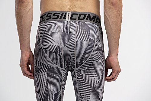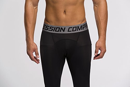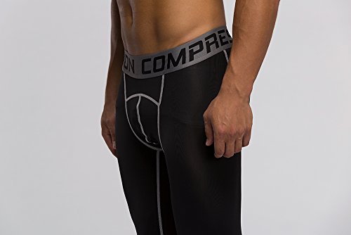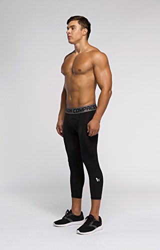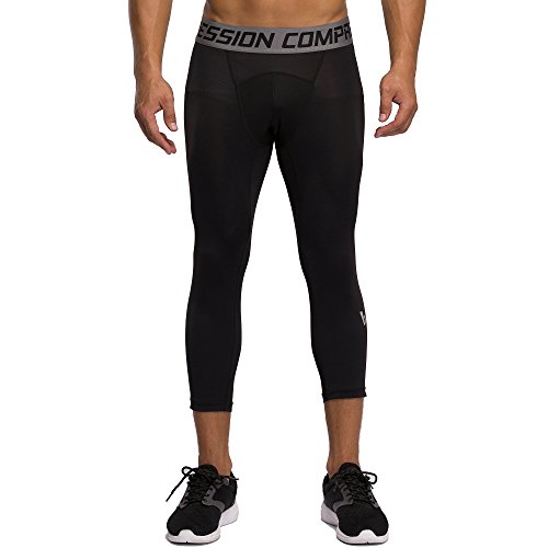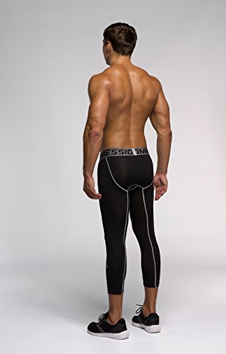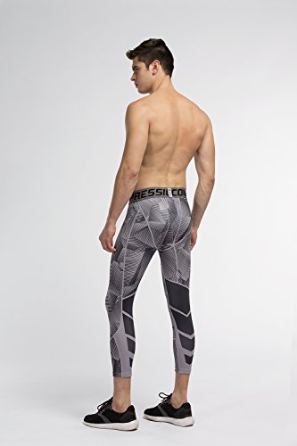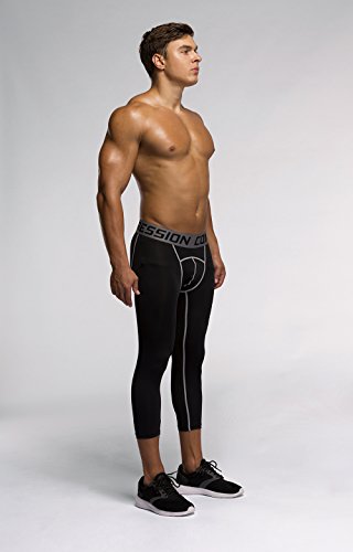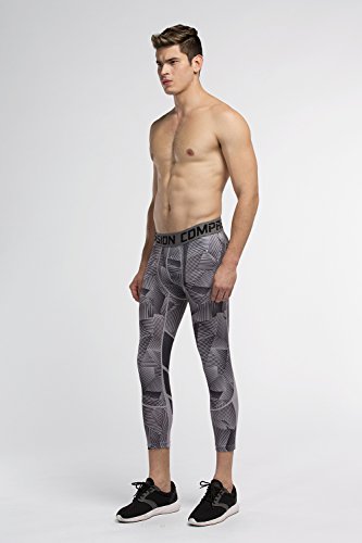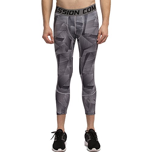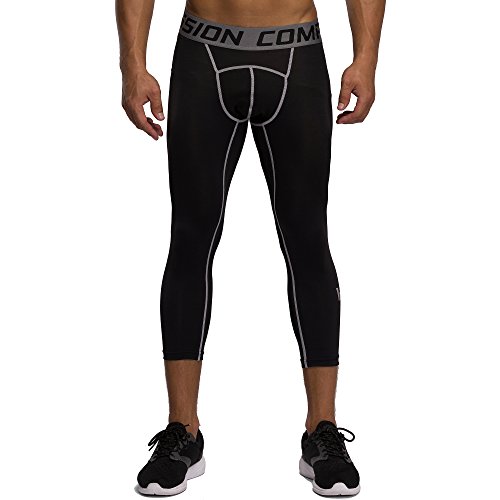 Men's Workout Yoga Running 3/4 Compression Leggings Tights Three-quarter Pants (X-Large = US size Large, Black Gay Gradual)