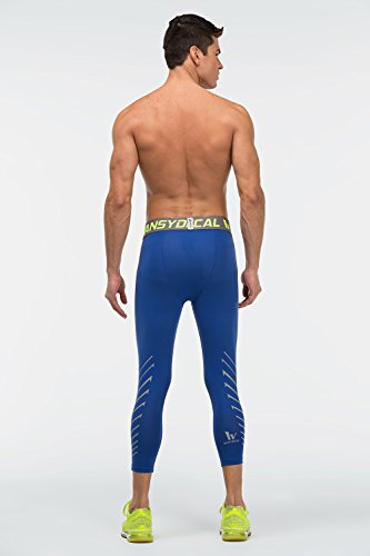 Men's Workout Yoga Running 3/4 Compression Leggings Tights Three-quarter Pants (X-Large = US size Large, Indido)