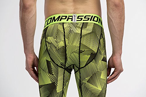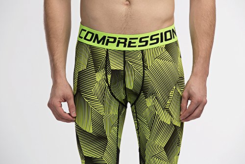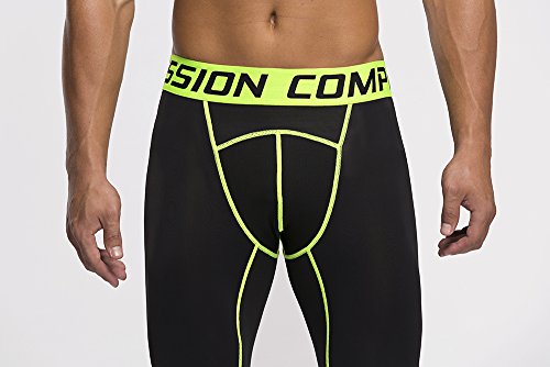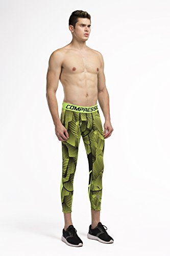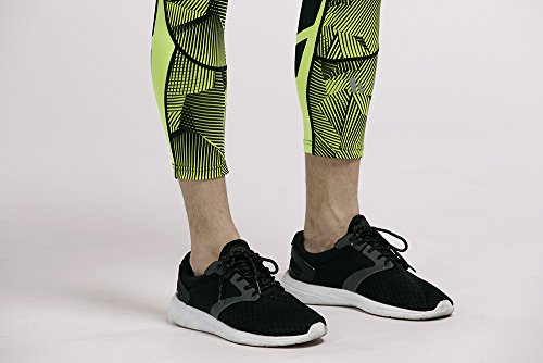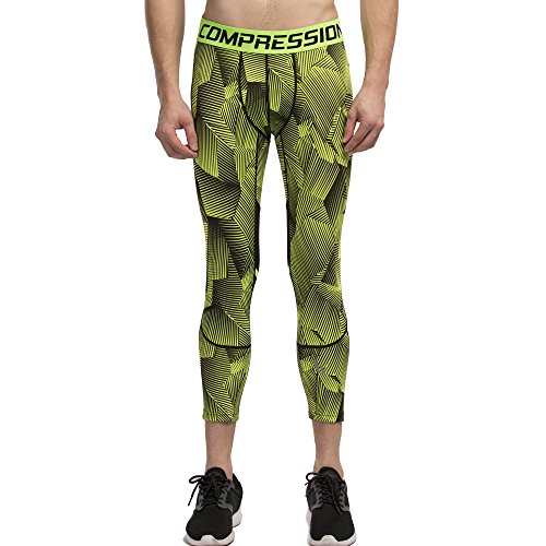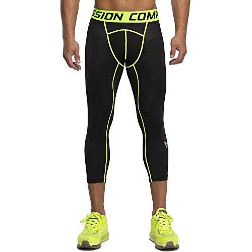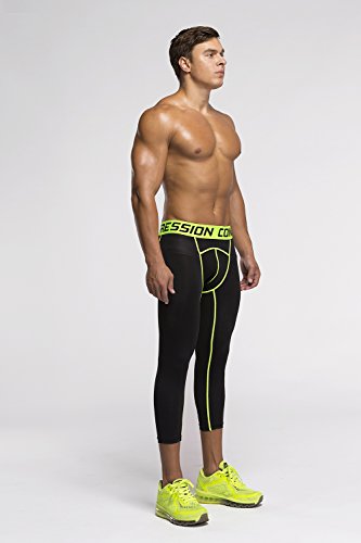 Men's Workout Yoga Running 3/4 Compression Leggings Tights Three-quarter Pants (X-Large = US size Large, Fluorescent Green)