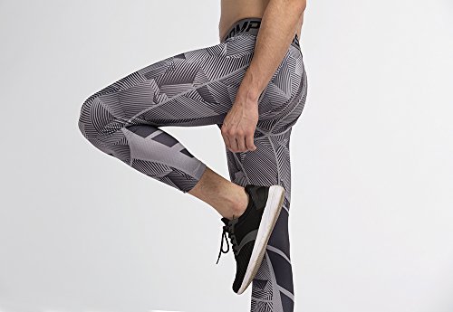 Men's Workout Yoga Running 3/4 Compression Leggings Tights Three-quarter Pants (Large = US size Medium, Black Gay Gradual)