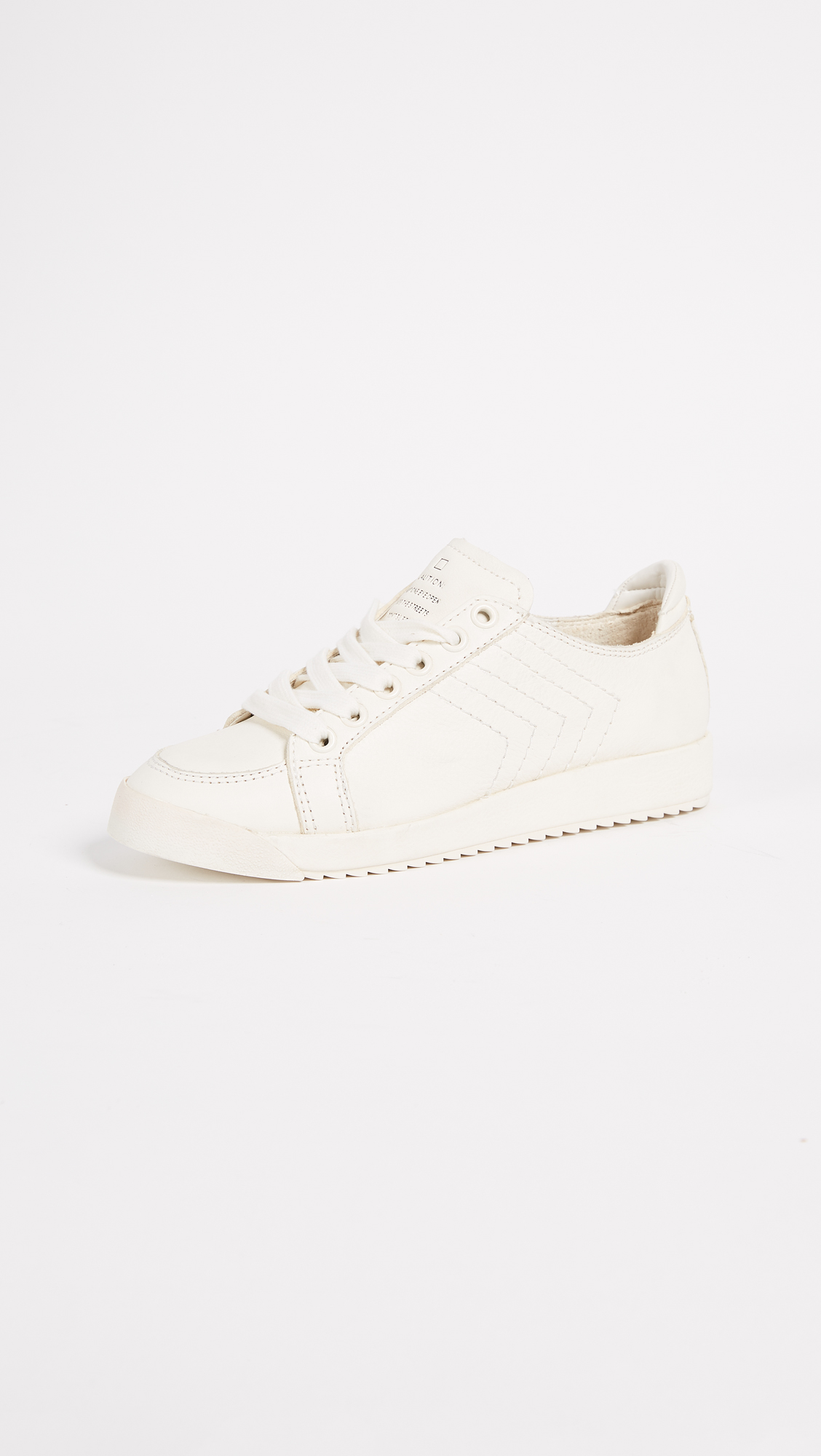 Retro-inspired Dolce Vita sneakers crafted in bright leather. Subtle chevron topstitching at the sides. Lace-up closure. Covered platform. Rubber sole.