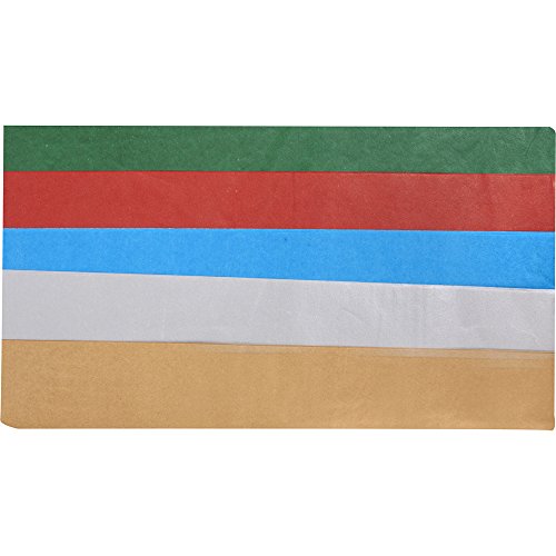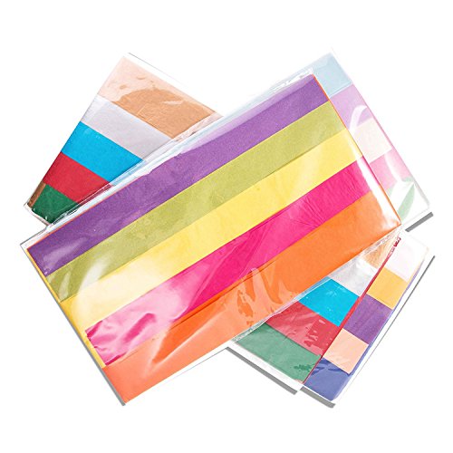 Each sheet of assorted solid color tissue paper measures 20 x 26 Inch. This premium quality tissue paper is perfect for gift wrapping, paper crafts, packing and more! 100 sheets per package. Includes the following colors: 5 each of: White, Yellow, Purple, Apricot, Blue, Vanilla, Lavender, Mint Green, Gold, Silver, Aqua Blue, Red, Green, Orange, Hot Pink, Lime Green, Hot Purple, Light Yellow & 10 each of: Pastel Blue & Pastel Pink!!