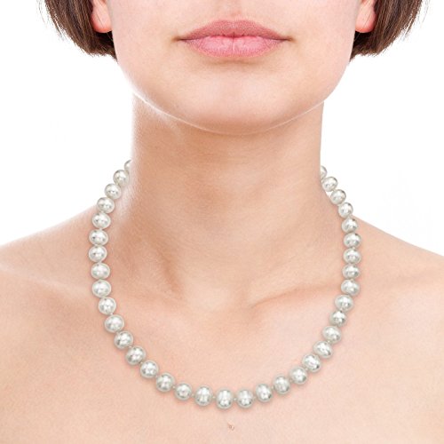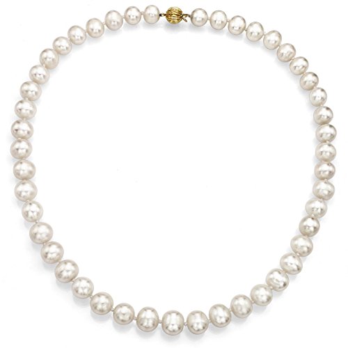 A Classic 14k Yellow Gold 8.5-9.5mm White Freshwater Cultured High Luster Necklace 18" Length. This Necklace is Single-knotted, and Secured with a Corrugated-ball Clasp.