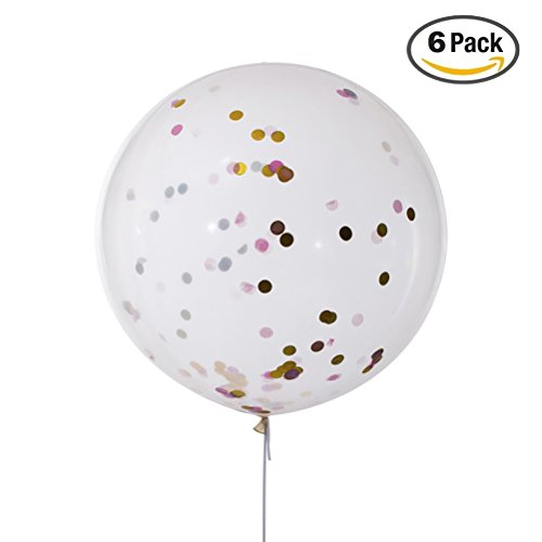 -. Title : MOWO 36'' Giant Round Clear Latex Balloon with Confetti Jumbo Helium Party Balloon (6 set, gold glitter/ pink/ white confetti)