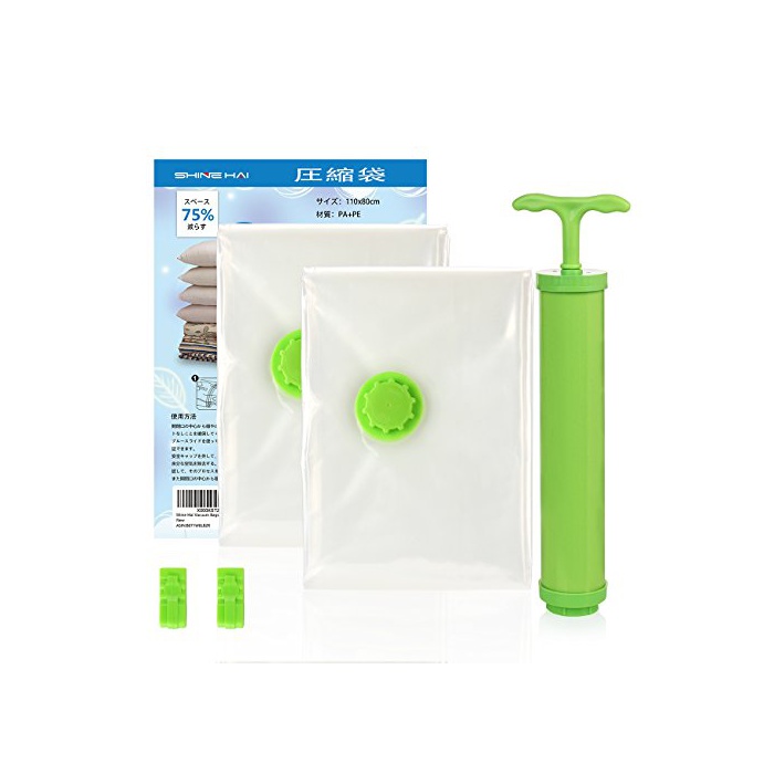 Shine Hai SH 압축봉투 수납대 이부자리 수납 자동 록식 밸브 압축율75% 이부자리 압축 약간 큰 의류 특대110X80cm 펌프 부착 방다니 방곰팡이 대책2 개입2년 보증 공기 누락 방지 여