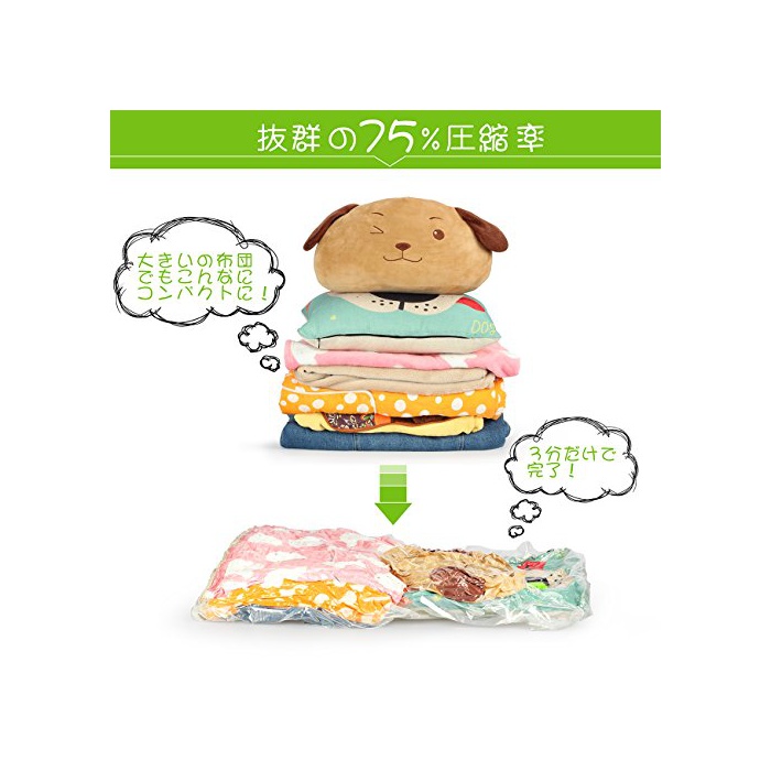 원본상품명: SH ?縮袋 ?納袋 ふとん?納 自動ロック式バルブ ?縮率75% ふとん?縮 大きめの衣類 特大110X80cm ポンプ付き 防ダニ 防カビ?策 二個入 二年保? 空?漏れ防止 旅行 引越し 再利用