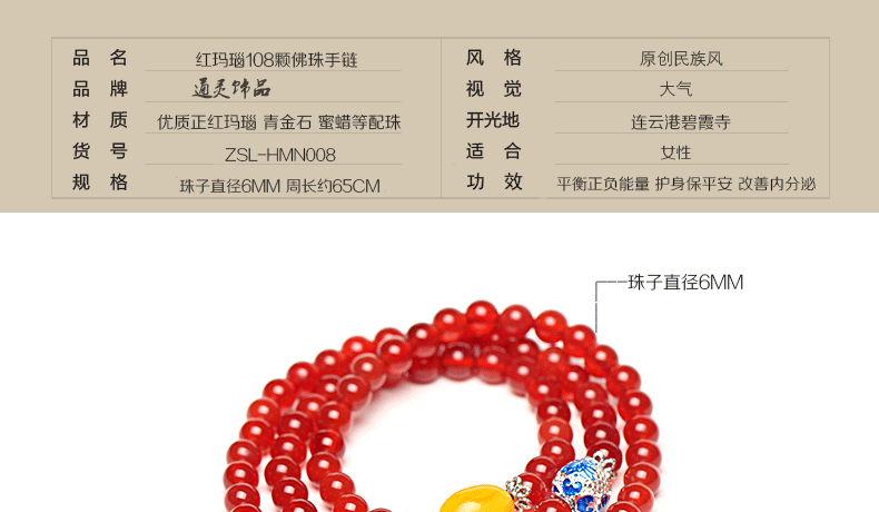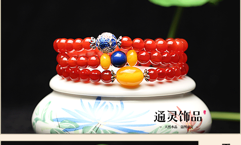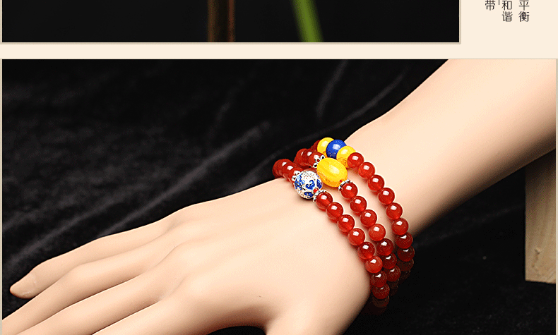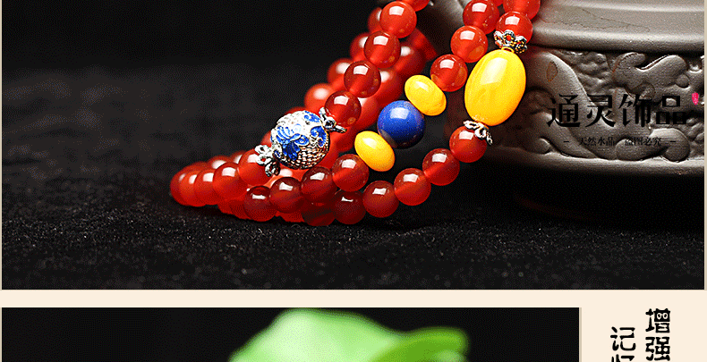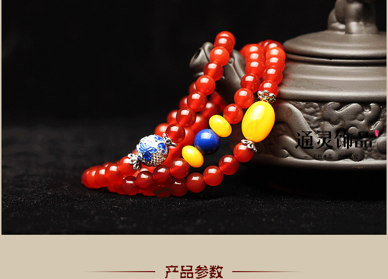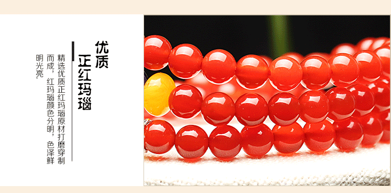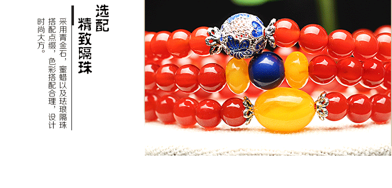 开光天然红玛瑙佛珠手链女多圈水晶手串蜜蜡隔珠转运招财生日礼物