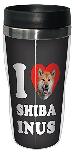 Tree-Free Greetings SG25119 I Heart Shiba Inus Sip 'N Go Stainless Lined Travel Tumbler, 16-Ounce