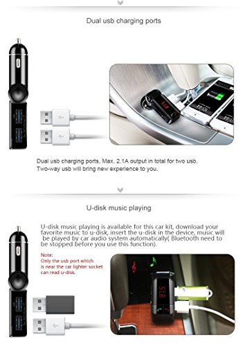 Dual USB Charging port:Output voltage, DC 5V,2.1A.You can charge your iphone/Ipad/tablet/and other smartphone when you enjoy your driving. 2 USB socket support U Disk to play music in your car speaker. Compatible with iPhone 6 6+iPad Air, iPad Mini 2, Samsung Galaxy S4/3, Samsung Galaxy Note 3/2, Nexus 5/4, HTC One, Blackberry and Android, Blackberry & Windows Smartphone