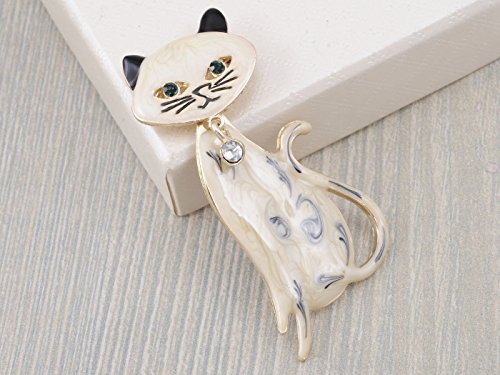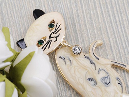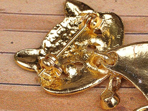 UNIQUE DESIGN - Brooch featuring a cat design with clea colored rhinestones and painted enamel