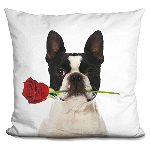 LiLiPi Boston Terrier Rose Square Decorative Accent Throw Pillow