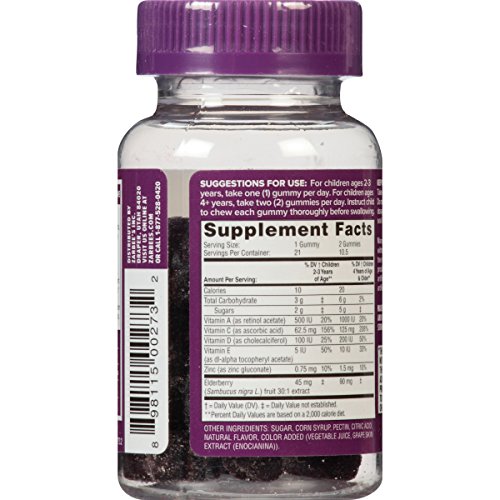 ReleaseDate : 2014-07-10 Studio : Zarbee's Publisher : Zarbee's Binding : Health and Beauty Product Description Zarbee's Naturals Children's Mighty Bee Gummies Elderberry Immune Support Supplement is packed with vitamins and real elderberry extract to offer added immune support* when your child needs it most. These great-tasting gummies are made with a concentrated burst of elderberry extract as well as vitamins A, C, D, and E and zinc to help support your child's immune system.* Founded by a pediatrician and father looking for a healthy and chemical-free alternative for his family, Zarbee's Naturals Children's Mighty Bee Gummies Elderberry Immune Support Supplement is made with carefully-sourced, wholesome ingredients, is vegetarian-friendly, and contains no artificial colors, flavors or sweeteners, drugs, alcohol, gelatin, or gluten. 0