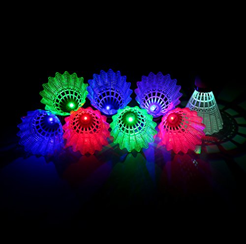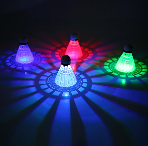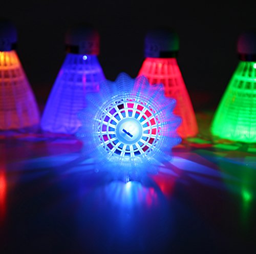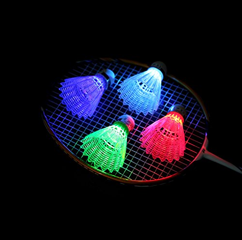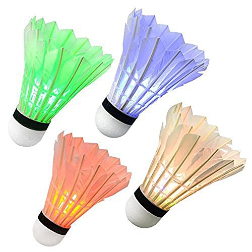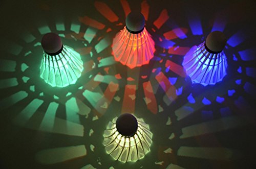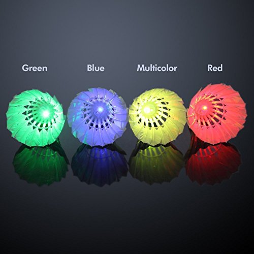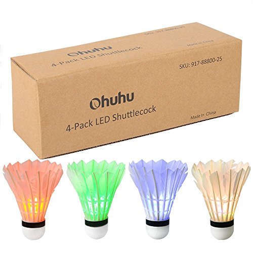 Studio : Ohuhu Publisher : Ohuhu Binding : Misc. Product Description Enjoy playing badminton at night with these Ohuhu LED Badminton Shuttlecocks! *4 LED COLOR OPTIONS (Red, Green, Blue and Color-changing) - Perfect for playing in the dark environment. *LED lights installed in the back of the cork, with On/Off push button. *Material: goose feather, feather, SMD lamps, electronic products. *Cork ball head and each shuttlecock only weights about 6.7g/0.24oz. *Inexpensive shuttlecocks for beginners.