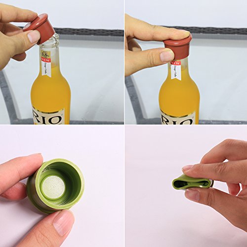 SILICONE WINE STOPPER, YYP SILICONE REUSABLE WINE BOTTLE STOPPER/BEER SEALER COVER, ASSORTED COLORS SILICONE WINE BOTTLE CAPS, SET OF 5