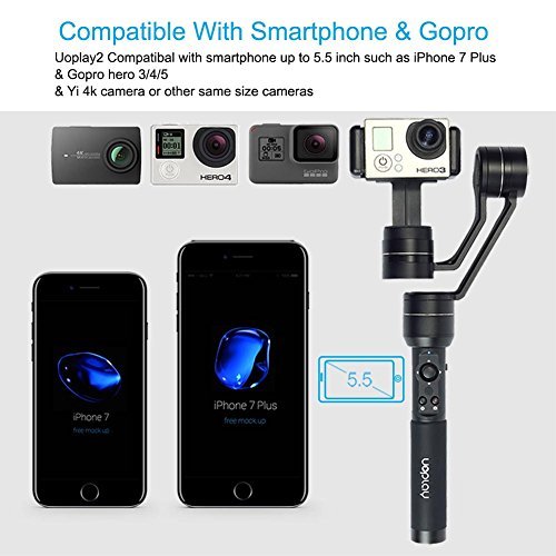 OFFICIAL AIbird Uoplay2 3 Axis Handheld Universal Smartphone Steady Gimbal Stabilizer for iPhone 7 and 7 Plus and GoPro Hero 3 4 5/other Sports Action Camera of Similar Size