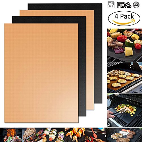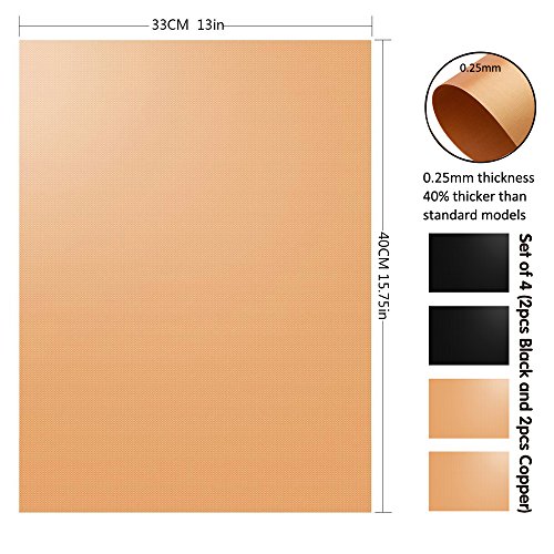 Grill Mat - Set Of 4 Non-Stick BBQ Grilling & Baking Sheet - FDA Approved,Durable,Teflon,Reusable PTFE Coated Cooking Liner - Works on Gas,Charcoal,Electric Barbecue - 16.75''x13''(2 Black+2 Copper)