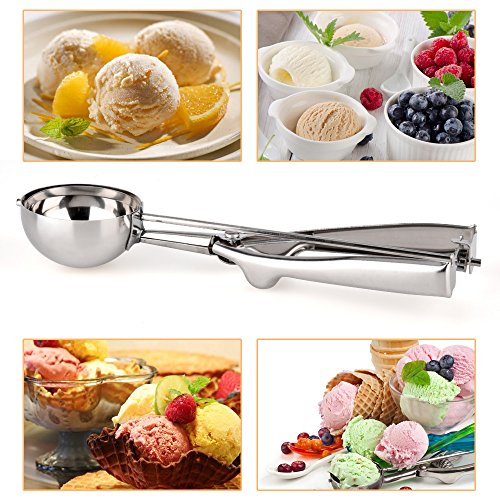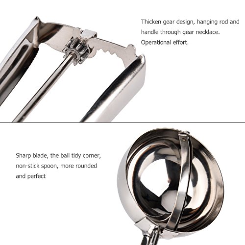 2. Simple and Practical: It`s easy to squeeze and emptied the ice cream. The innovative cog-and-ratchet scoop with release system (better than springs) make these scoops relieve pressure on your wrist and hand