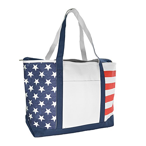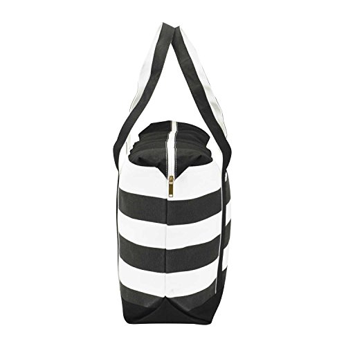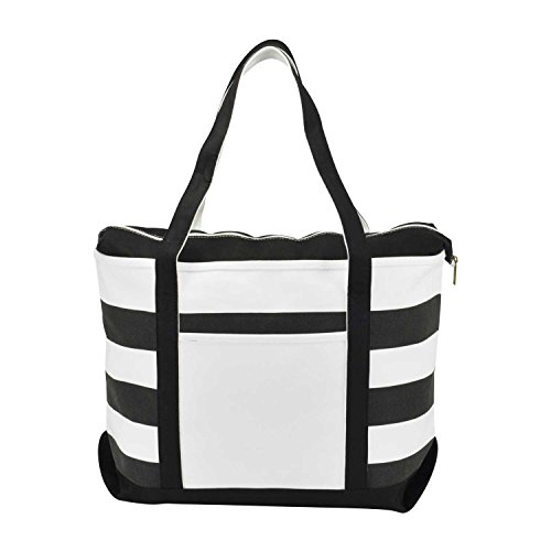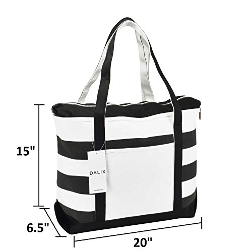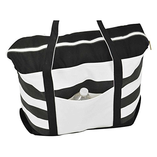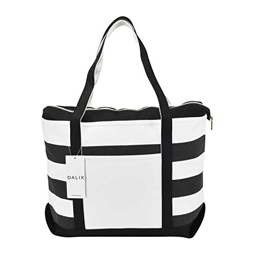 -. Feature : FEATURES: 1 Outer Pocket, 9" Drop Handles, Zippered Top Closure, Two Toned Striped Color. / MATERIAL: DALIX Premium 18 oz. 100% Cotton Canvas / SIZE: 23" Length x 15" Width x 6" Depth / CLOSURE: Zippered Top / COLOR: Black/White, Red/White, Purple/White, Navy Blue/White, Pink/White