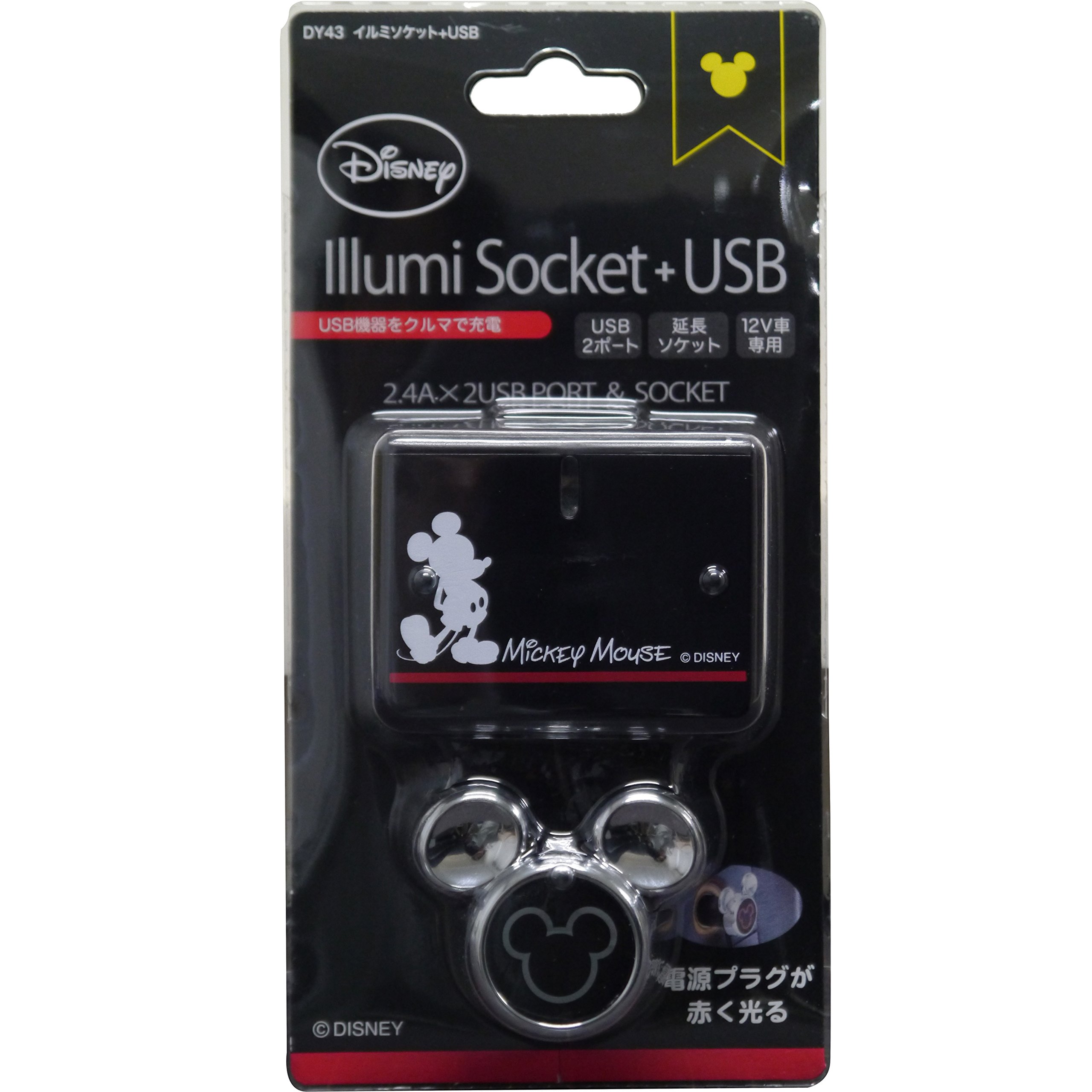 Seiwa for Disney Illuminating socket + USB Mickey Mouse DC12V car DY43