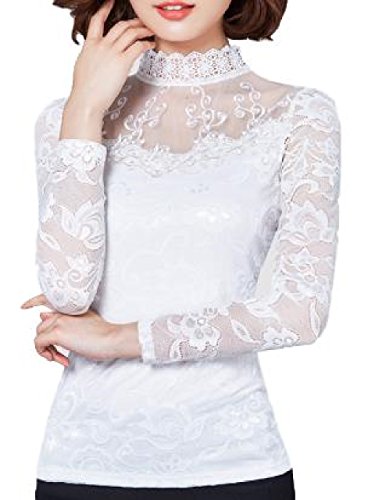 -. Title : (YAMSSY) レディース レース ブラウス トップス 長袖 きれいめ エレガンス 大人 刺繍 結婚式 2色展開(黒、白)