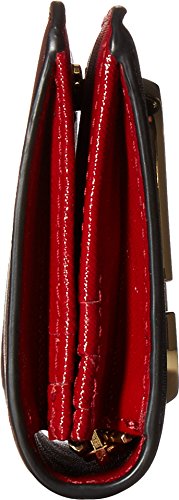 Lined interior features centered zipper pocket, three slide bill compartments, and eight credit card slots for secure, easy storage.