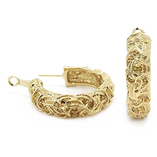 Classic Byzantine design that will never go out of style. Made of base metal alloy, these hoop earrings are featuring byzantium knot ornate detailing. Post backings secured these hoop earrings with ease and comfort. Casual and timeless at the same time. These fashion clip on earrings will make the perfect choice for your special someone for Valentine's gift, Christmas gift, Mothers day gift, Birthday gift, Anniversary Gift, or Bridal party gifts. For pierced ears.Feature