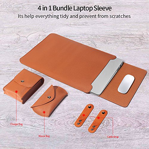 ♣【Multi Purpose】 : 4 in 1 Bundle sleeve can be used as a mouse pad when the MacBook is out, your mouse will glide nicely across its smooth leather surface. The mouse bag, charger bag, cable strap help everything tidy and prevent from scratches.