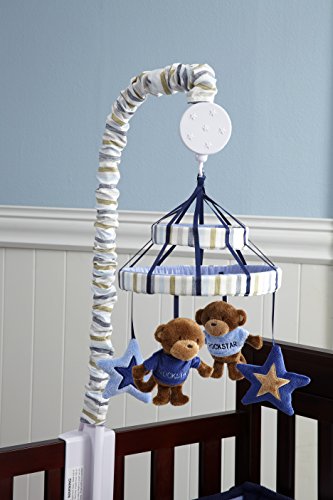 Carter's monkey collection - musical mobile. This musical mobile will help rock your little one to sleep. Gently spins while playing Brahms Lullaby. Features plush monkeys and stars underneath a stripe canopy. Coordinates with Carter's monkey collection bedding.Feature